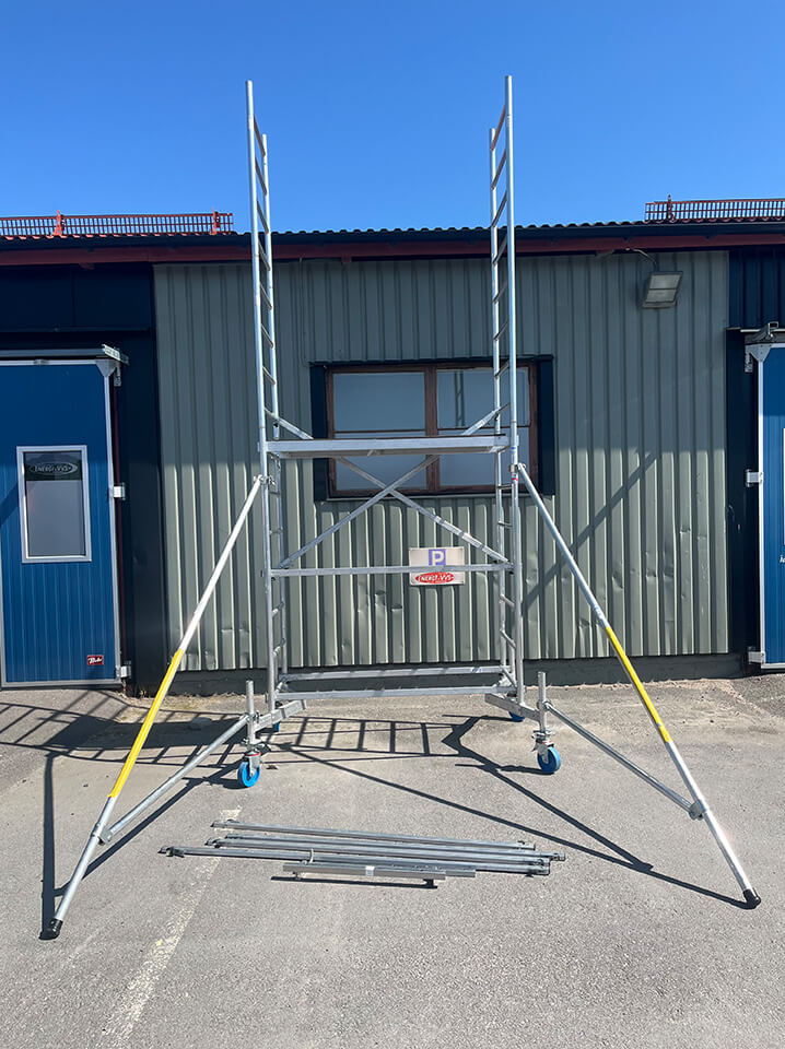 Lätthanterlig rullställning med en arbetshöjd på 5 meter.